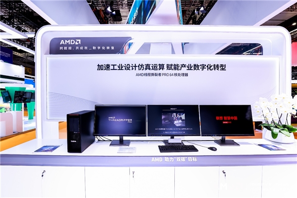 在 “赋能数字化转型”展区,AMD重点展示了锐龙线程撕裂者处理器打造的高效解决方案。搭载AMD锐龙线程撕裂者处理器的联想ThinkStation P620是业内率先发布的一款64核心工作站平台,具备跨时代的8通道内存技术,拥有超过200项ISV整机全功能认证,全面支持工业设计3D造型、建模、大型装配以及模拟仿真等复杂应用,旨在引领专业工作站计算性能的行业标准。
